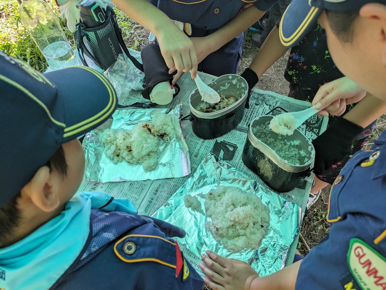 その後、ガスチームと薪チームに分かれて、炊飯対決をしました。