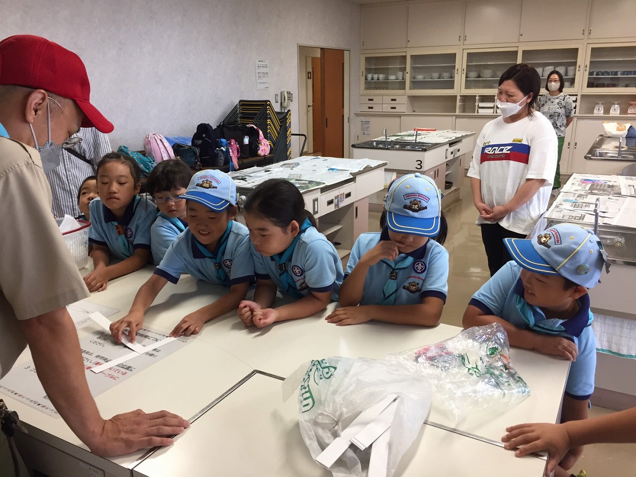 副長から説明を聞いて、工作用紙を切ったり絵を描いたりして完成させました。