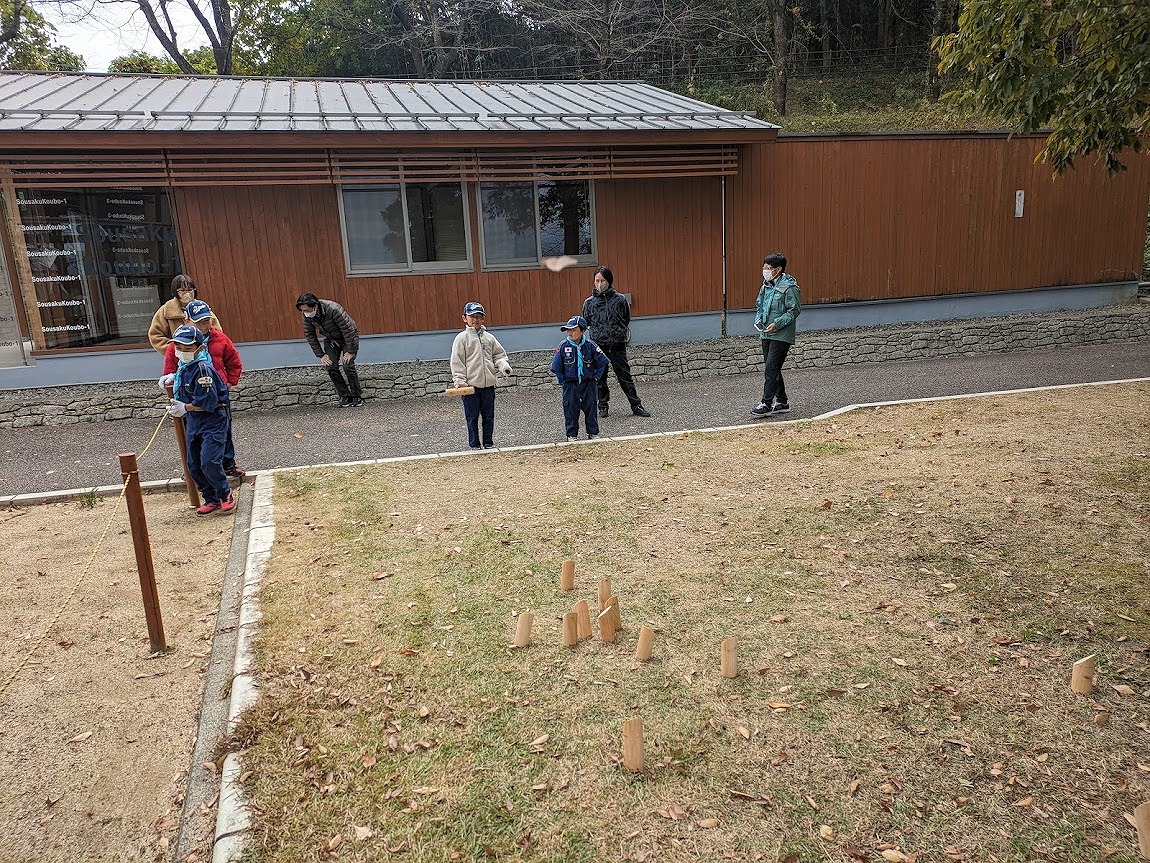 完成したばかりの道具を使ってモルック大会ができました。